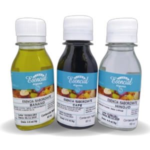 Banano, Cereza, Fresa, Limón, Mandarina, Maracuyá, Melocotón, Mora, Naranja, Piña, Arequipe, Café, Canela, Chocolate, Coco, Hinojo, Mantequilla, Queso, Vainilla Blanca, Vainilla Negra, Almendra, Caramelo, Leche condensada, Mantecado, Ponqué/Festival, Chicle Azul, Kola, Ron, Uva/Vino.